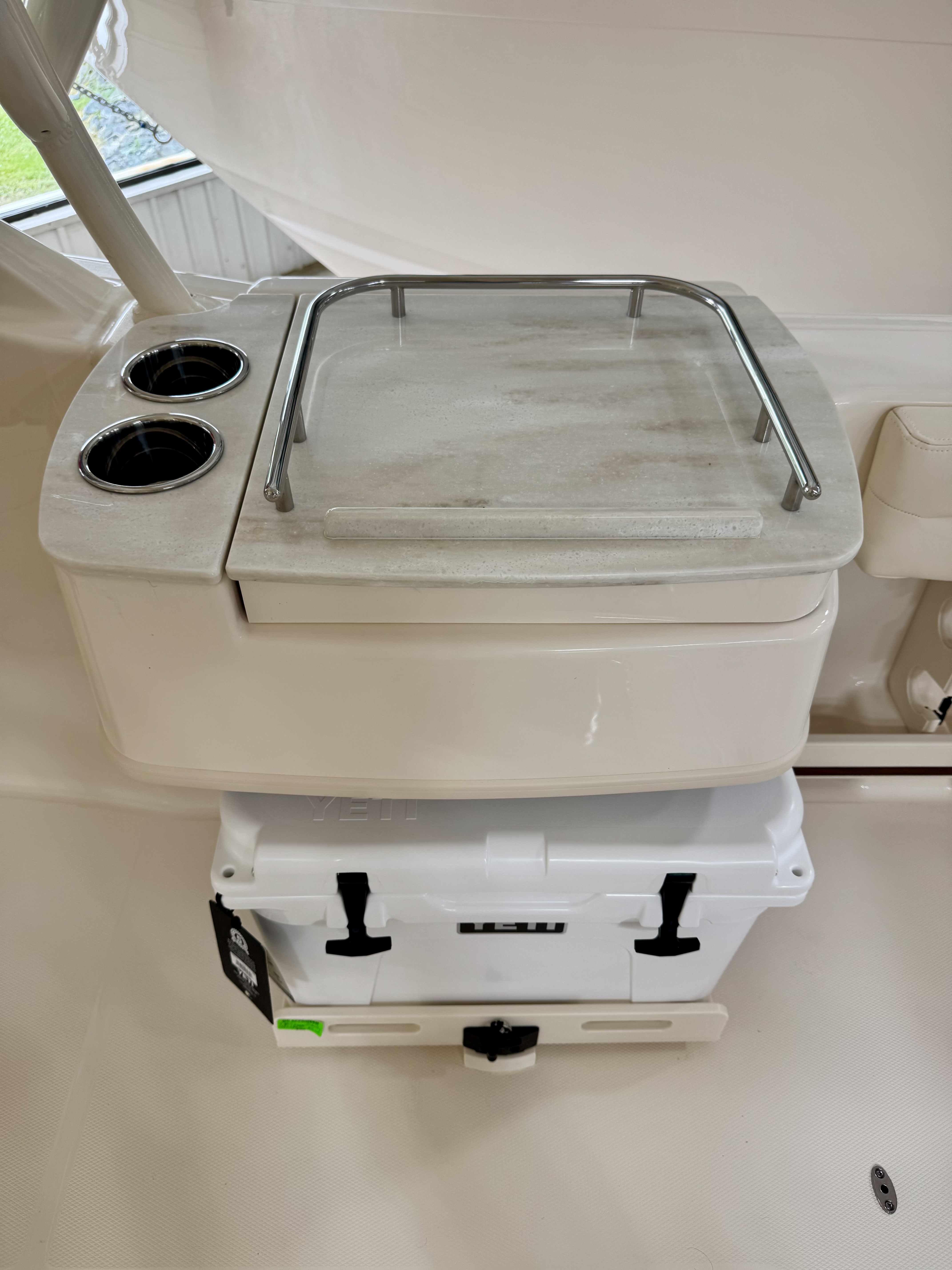From the deluxe companion seat and full side bar with Corian sink to the enclosed head compartment and full suite of protective ivory canvas, the Freedom 235 is equipped for all-day comfort and convenience. Anglers will appreciate the spacious cockpit and fishing-ready design, while families will love the plush seating, shade options, and thoughtful storage throughout.