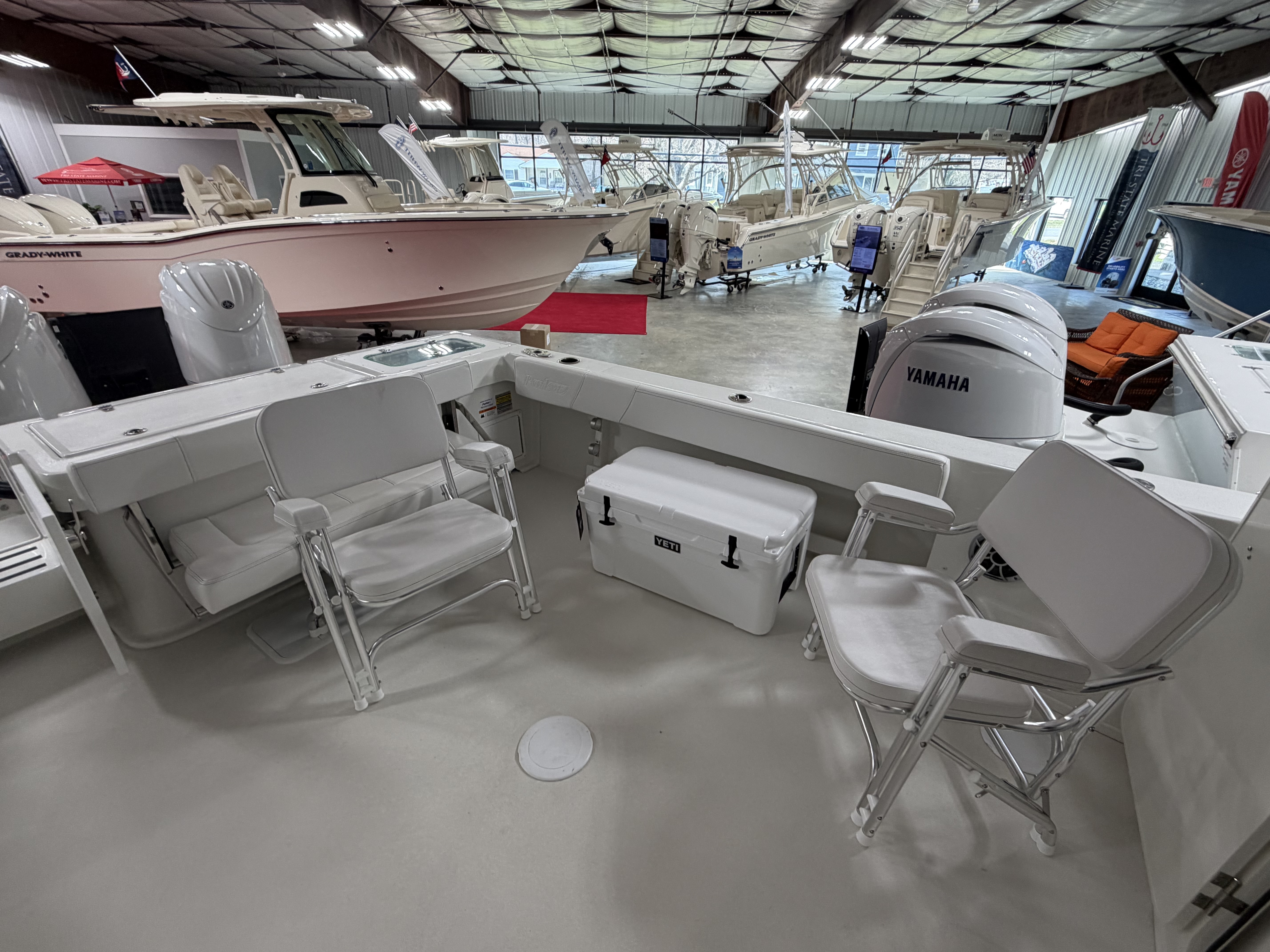 Designed for both serious fishing and comfortable cruising, this model features a spacious, versatile cockpit and upgraded seating throughout. The addition of a second station provides enhanced visibility and control, while premium Garmin electronics keep you confidently on course.